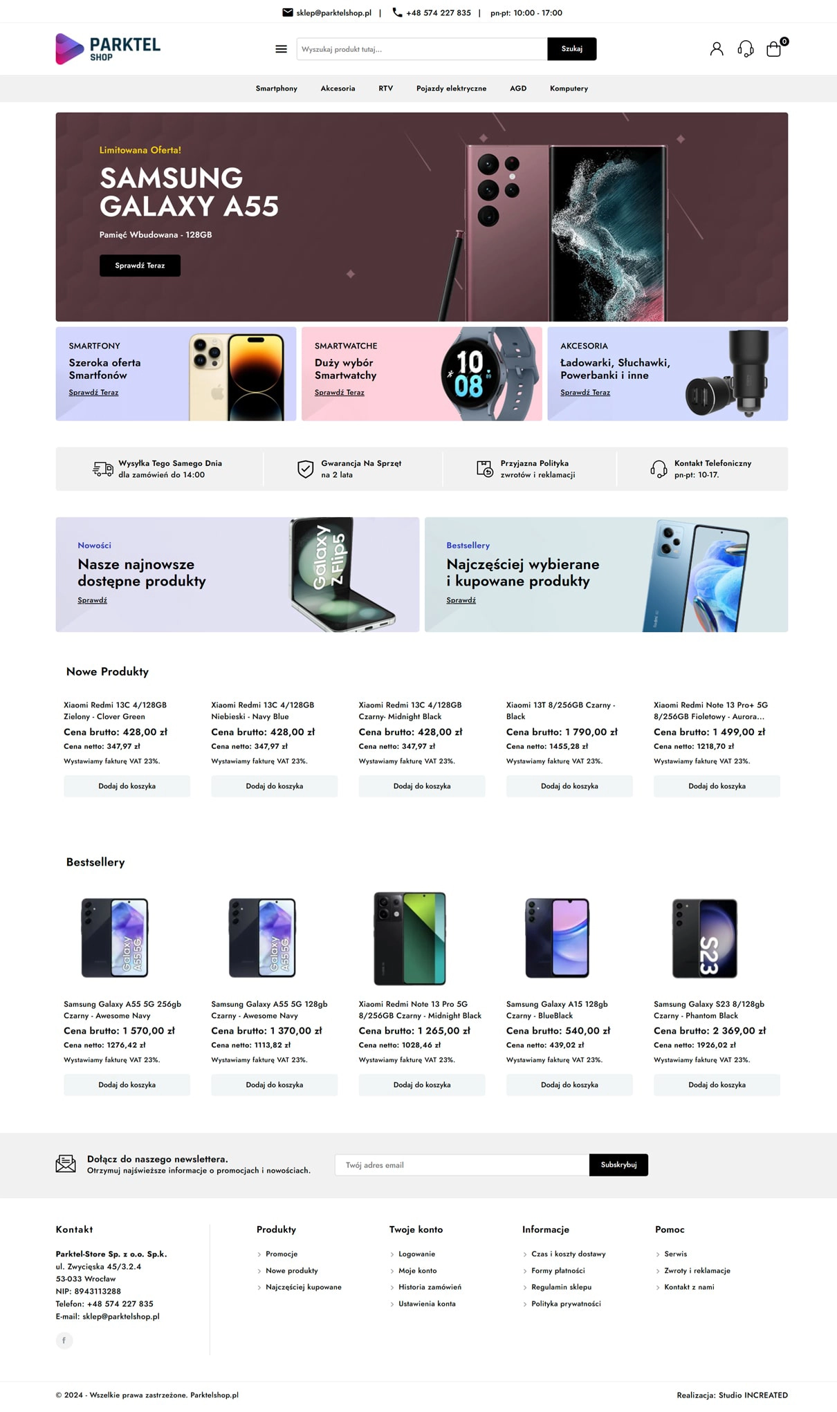 Dla dużego sklepu z telefonami i akcesoriami wdrożyliśmy dedykowany sklep na platformie Prestashop. Głównym założeniem projektowym było stworzenie nowoczesnej i minimalistycznej koncepcji graficznej dla całego sklepu, biorąc pod uwagę funkcjonalność i rozbudowaną dedykowaną strukturę menu i zaawansowanego koszyka zakupowego.